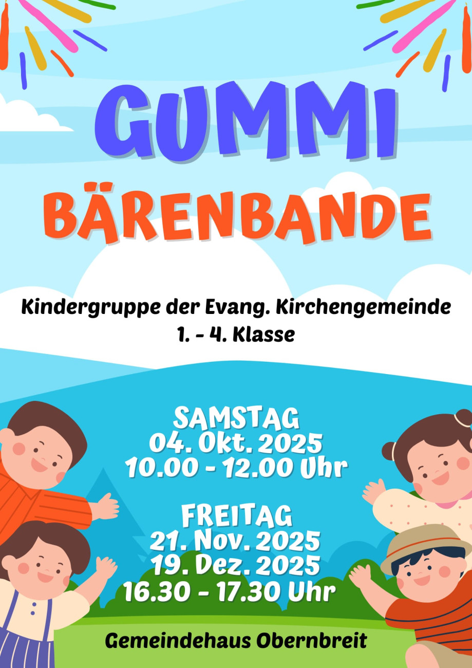 Herzliche Einladung zur Gummibärenbande - Kindergruppe der Ev. Kirchengemeinde für Kinder der 1. – 4. Klasse