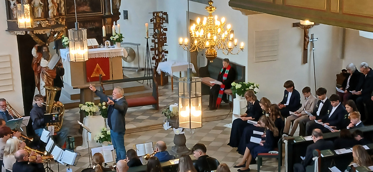 Der Gottesdienst, der durch den Posaunenchor, dem Projektchor und Organist Hermann Wurl begleitet wurde,  stand unter dem Motto: „Geliebt, begabt, berufen von Gott".